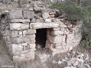 Murs: De pedra seca, s'aprofita una roca per fer el tancament Sud-Oest