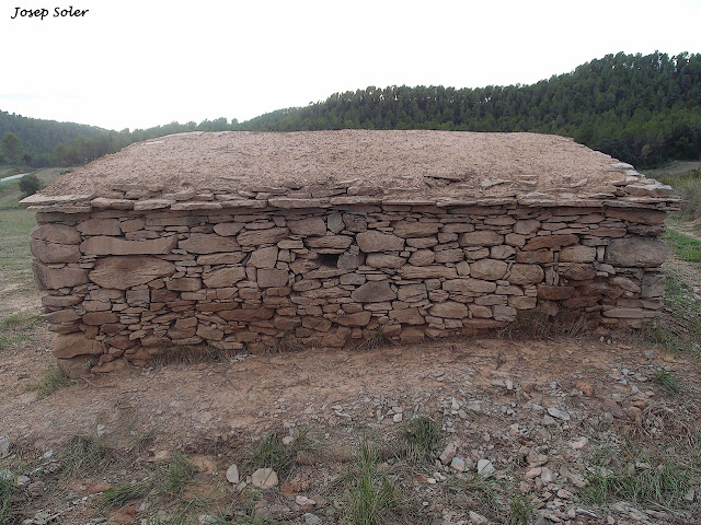 Coberta: Bigues de fusta i lloses de pedra i terra.